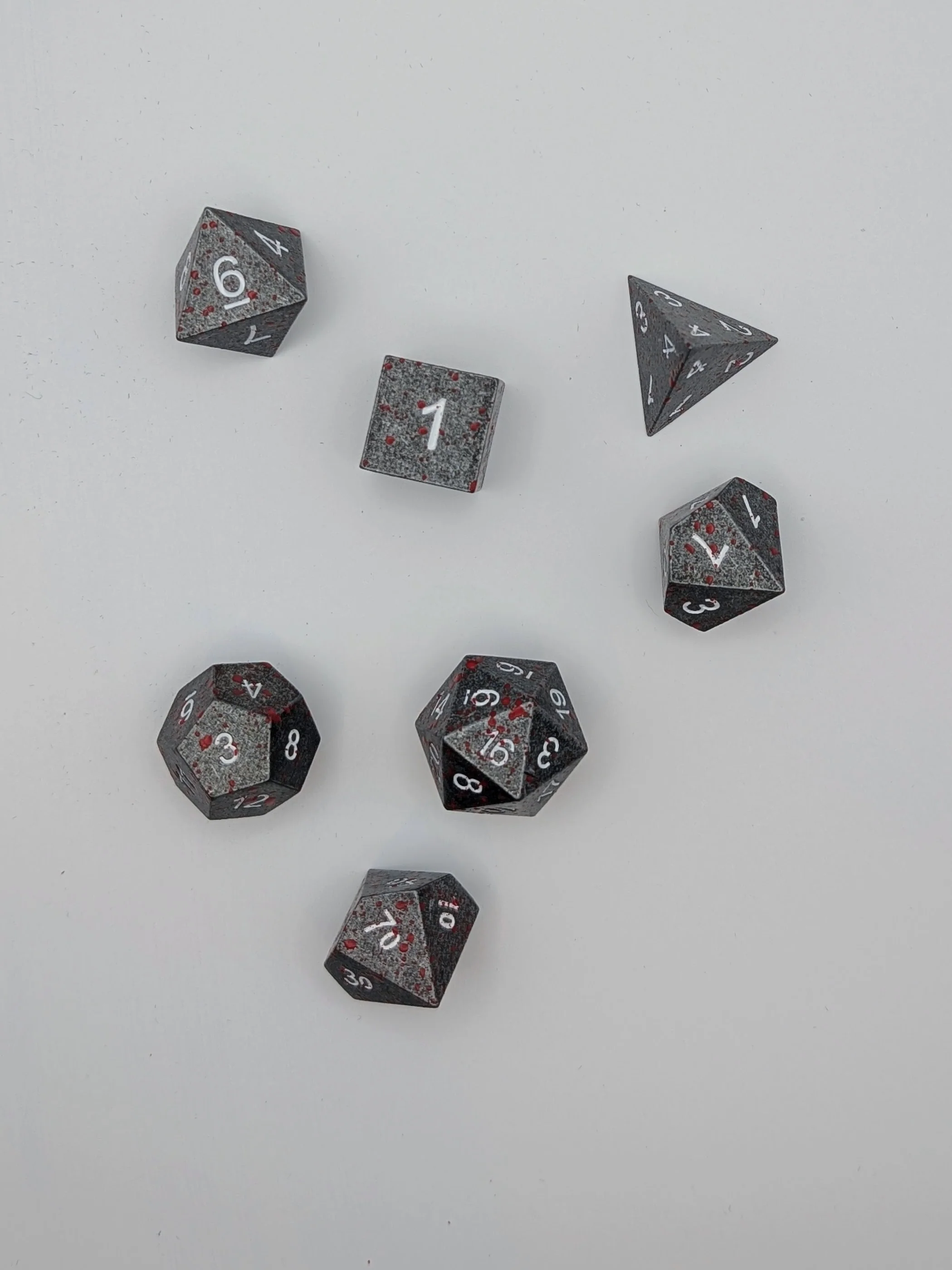 The Battleborn 7 Piece DnD Dice Set is perfect for hardened champions and battlefield legends, blending a rugged, stone-like finish with striking crimson flecks that echo the memories of war. Crafted for dependable balance and satisfying weight, each die delivers confident, decisive rolls when the stakes are highest. Perfect for warriors, tacticians, and anyone who wants their tabletop gear to look as battle-tested as their heroes.