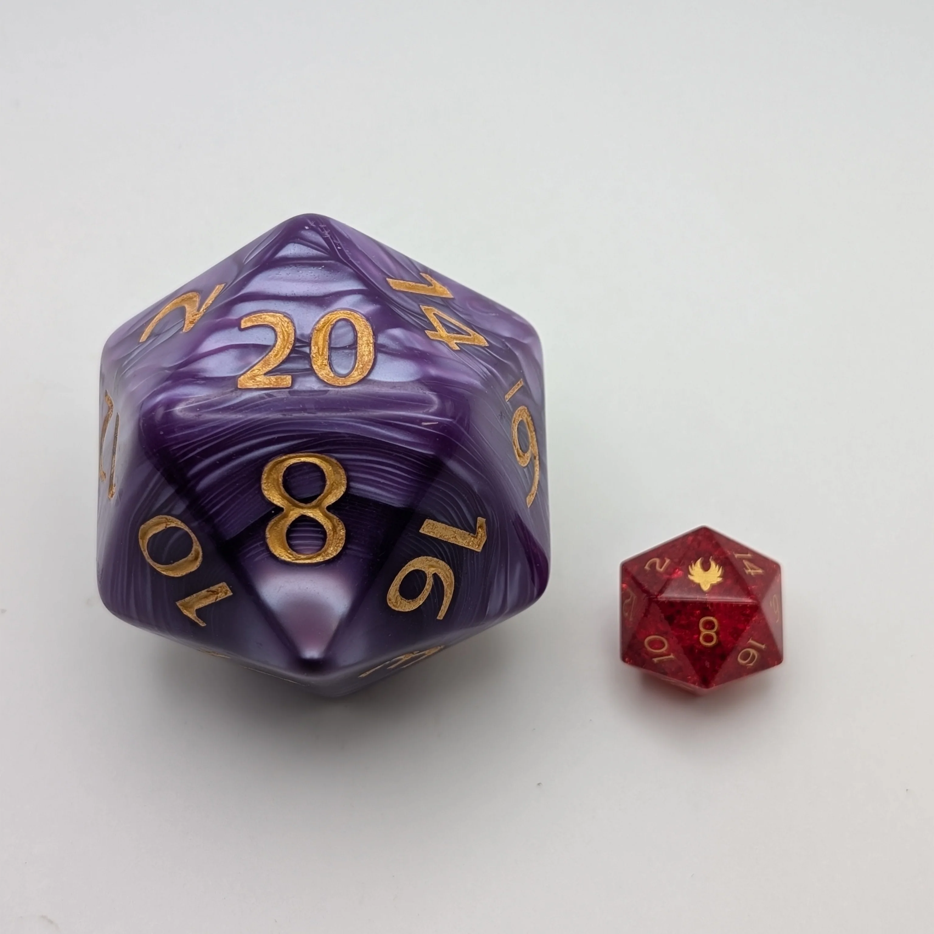 The Chonk D20 is a titan-sized 55mm twenty-sided die designed for serious gamers and collectors. Its oversized dimensions provide exceptional visibility and tactile satisfaction, making it ideal for tabletop sessions where clarity and presence matter. Crafted with precision, this die balances durability with a commanding aesthetic, enhancing both gameplay and display. Perfect for those who demand both function and style in their gaming accessories.