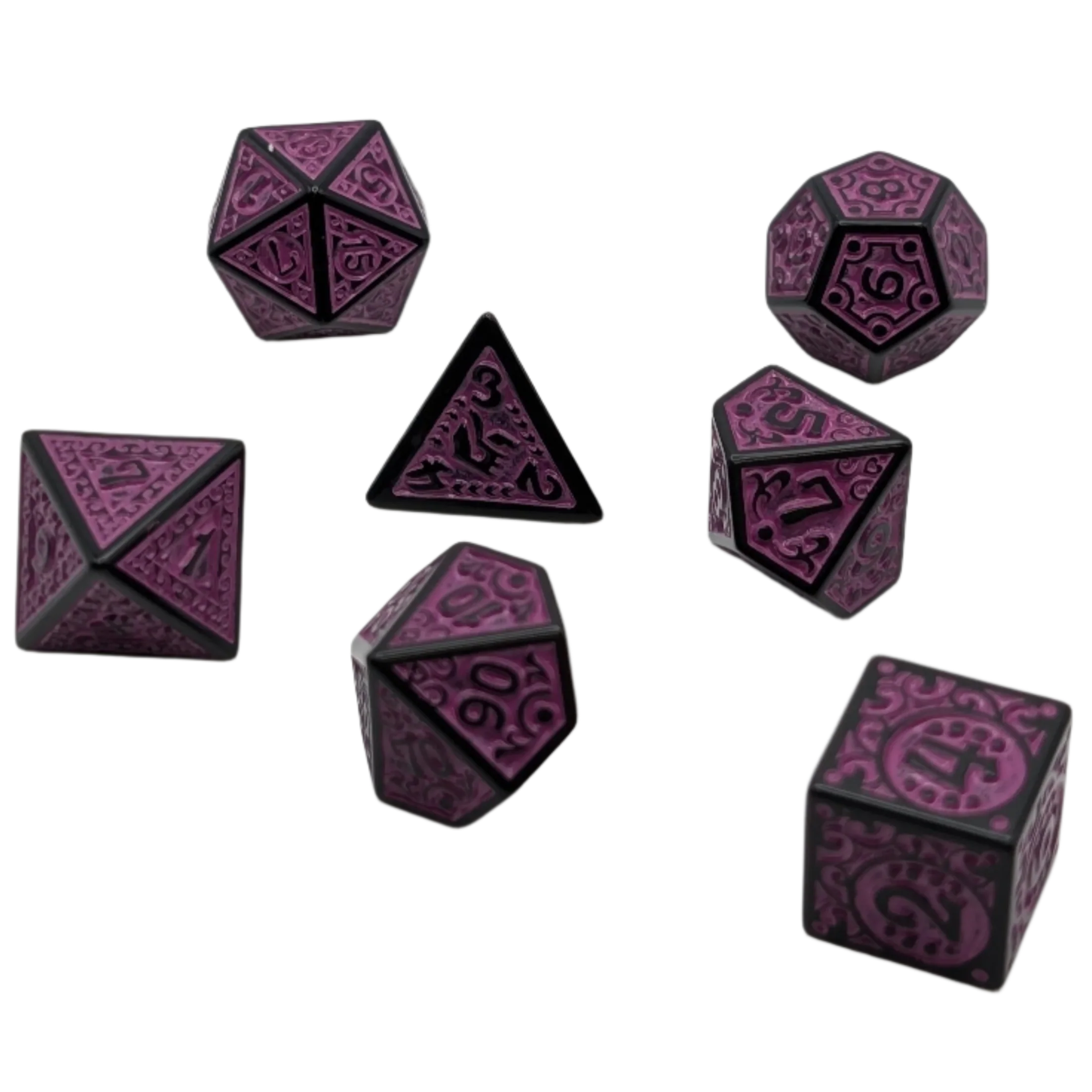 Elevate your tabletop adventures with the Purple Magic Flame 7 Piece DnD Dice Set. Each die embodies regal elegance fit for kings and queens of the gaming realm. This expertly designed set offers durability and precision, ensuring every roll commands respect and authority. Perfect for discerning players seeking both style and performance in their RPG sessions.