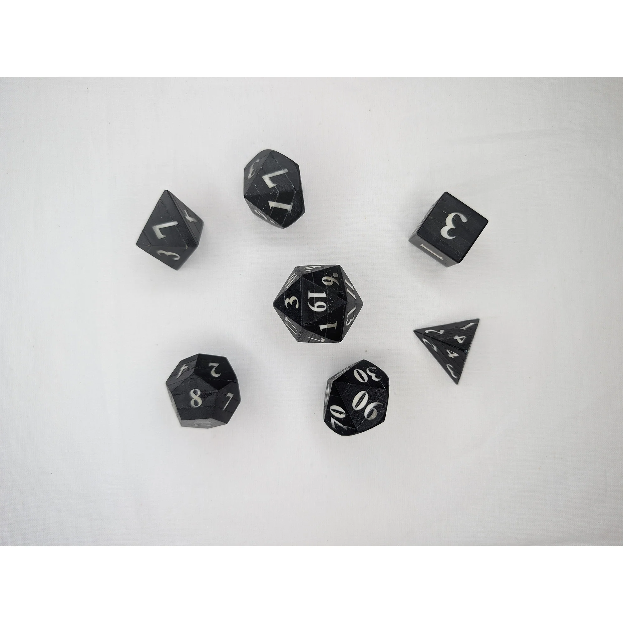 At the table, these dice announce themselves with a sober, satisfying clack: balanced yet heavy, each roll landing with the certainty of a verdict. This is not a trinket set; it’s a reliquary of power for players and collectors who favor memorable over flash. Place them in a vault, on a marble plinth, or beside a GM screen—wherever they rest, they look like consecrated artifacts reclaimed from catacombs and bound to your cause.